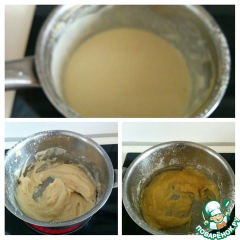 Растапливаем сливочное масло в небольшом сотейнике на среднем огне. Добавляем муку, горчицу и хорошо перемешиваем до однородного состояния. Постепенно небольшими порциями вливаем молоко, постоянно помешивая.