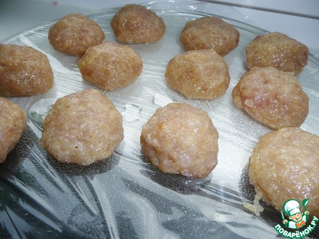 Обжарить фрикадели на растительном масле, слегка подрумянить со всех сторон.