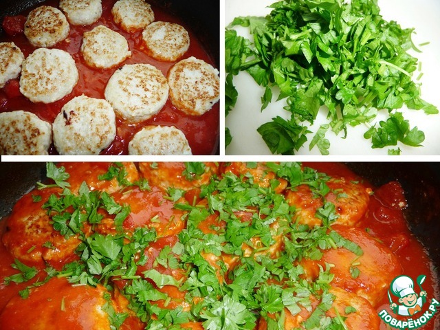 Измельчить петрушку, отключить огонь и добавить ее в фрикадели.