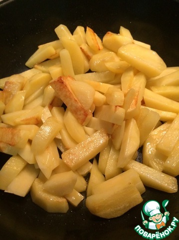 На масле обжарить в течении 5 минут картофель на среднем огне.
