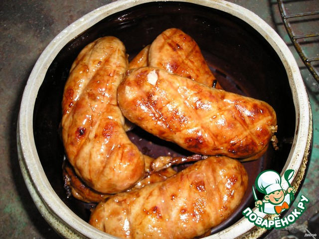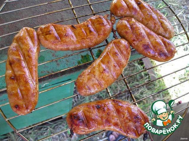 Выкладываем на решётку. Подрумяниваем. Для аромата - сбрызгиваем с одной стороны пивком.