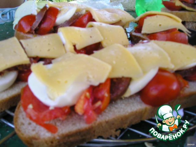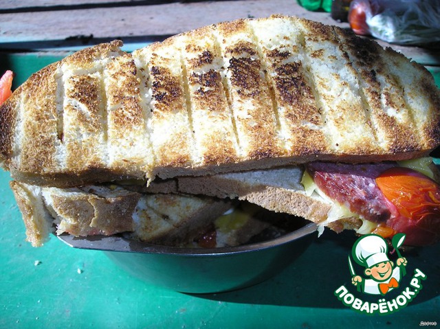 | Горячий бутерброд на решeтке. В походных условиях - радость с дымком. |