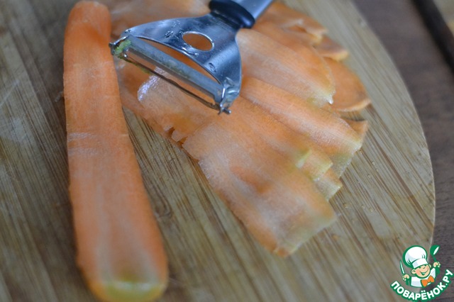 Нарезать полоски из моркови.