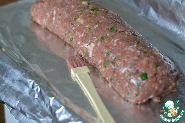 Фольгу смазать подсолнечным маслом, чтобы во время выпекания рулет не прилип.