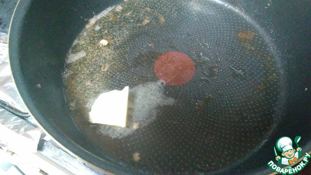 Выкладываем обжаренную курицу на тарелку. В эту же сковородку с остатками масла кладем кусочек сливочного масла, растапливаем