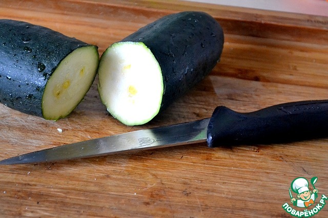 Натираем на крупной терке половинку кабачка, у меня молоденький цуккини. Я не очищаю с них кожуру