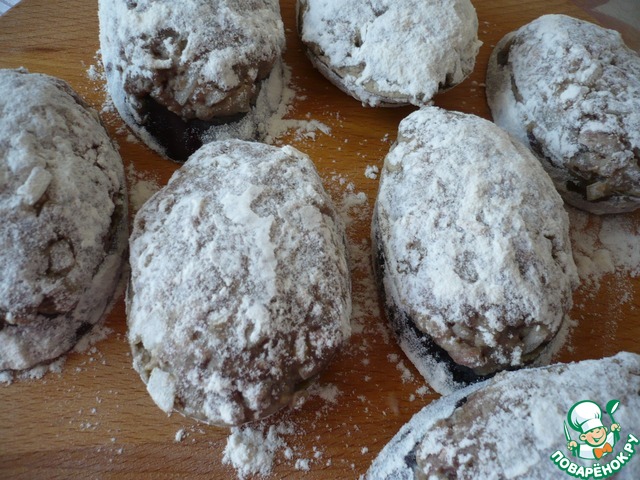 Баклажаны с фаршем со всех сторон обваливаем в муке.