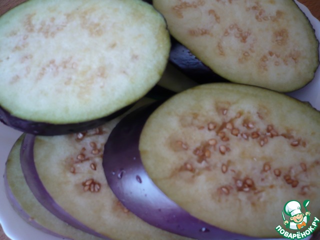 Баклажаны нарежьте наискосок. Присыпьте солью, а через 10 минут промойте и обсушите.