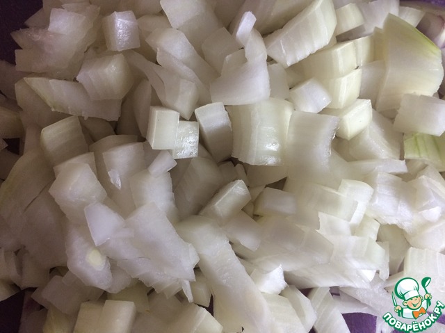 Лук нарезать кубиками и обжарить на растительном масле.