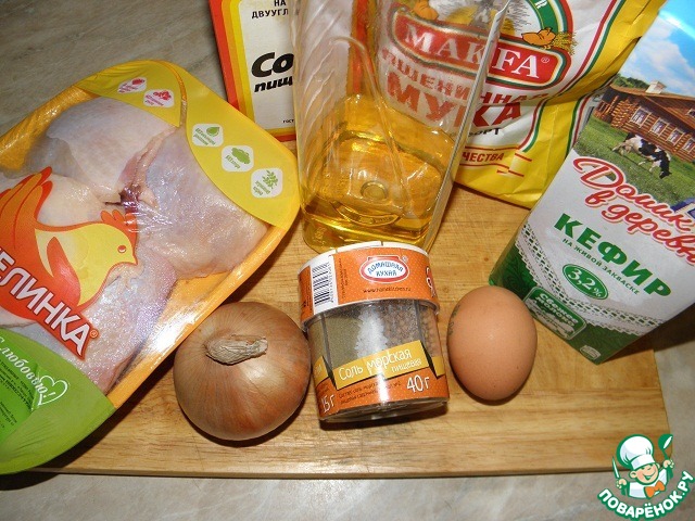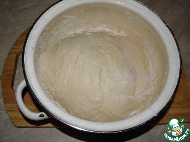 Делаем тесто: Из кефира ( 500 мл), 2 яйца, 1 ст. л. подсолнечного масла,2 ч. л. соли, 1ч. л. соды, 2 ч. л. сахара, муки примерно 600-700гр ( чтоб тесто получилось не тугое! ).