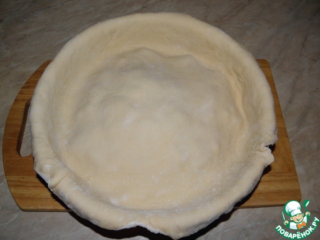 Раскатываем тесто, больше по размеру нашего блюда для выпечки ( не толсто) Накрываем тестом блюдо