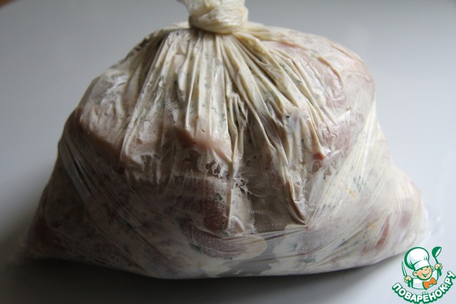 Сложить все в пакет, выпустить максимально воздух и завязать. Отправить в холодильник, как минимум, на 30 минут.