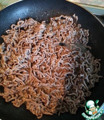 Пока тушатся овощи, на отдельной сковороде обжариваем фарш. Он должен поменять цвет, если фарш дал сок, то не нужно его выпаривать. Не пережарьте фарш.