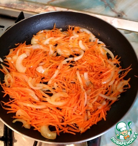 Добавляем морковь, обжариваем буквально пару минут.