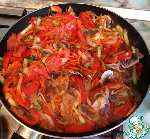 Если используете куриное филе или рыбу, то этот шаг пропускаем и добавляем их к овощам в сыром виде. За 2 минуты они приготовятся и останутся сочными.