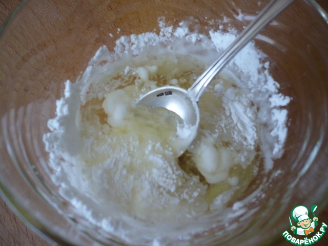 Яичный белок смешать с оставшимся крахмалом и водой.