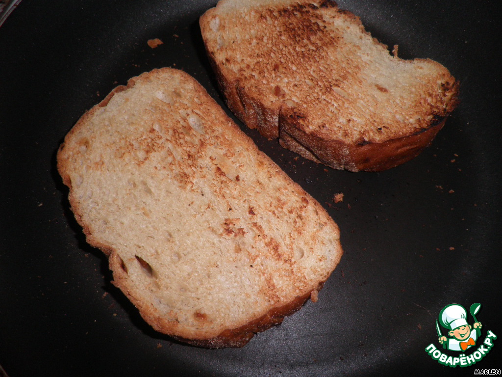 Хлеб слегка поджариваете на сухой сковородке или в духовке, можно на гриле. Когда хлеб поджариться, натрите его чесночком (в т.ч. и корочки)
