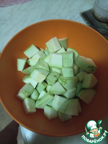 Кабачок моем, нарезаем на крупные куски и складываем в миску.