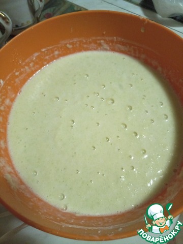 Дальше добавляем яйца, муку, крахмал, разрыхлитель, соль, перец и замешиваем тесто.