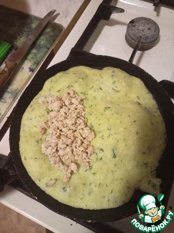 А потом аккуратно лопаткой приподнимаем свободный край, и накрываем им начинку