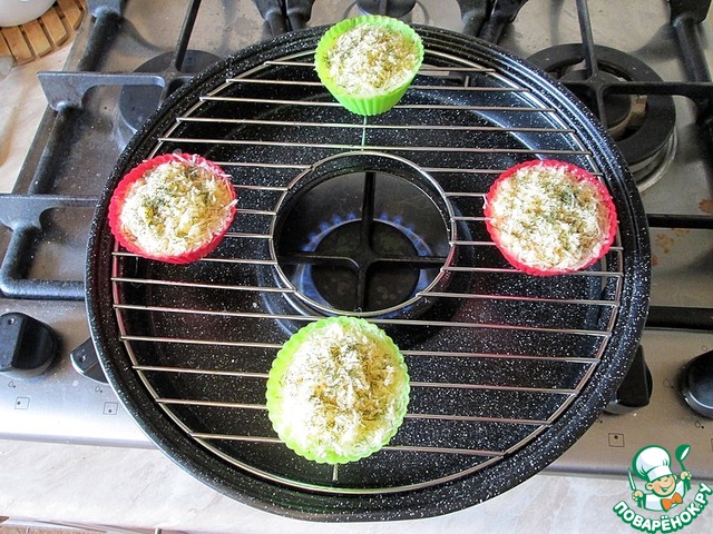 Ну вот, подготовительный этап закончен, теперь газ гриль на плиту и формочки на него.