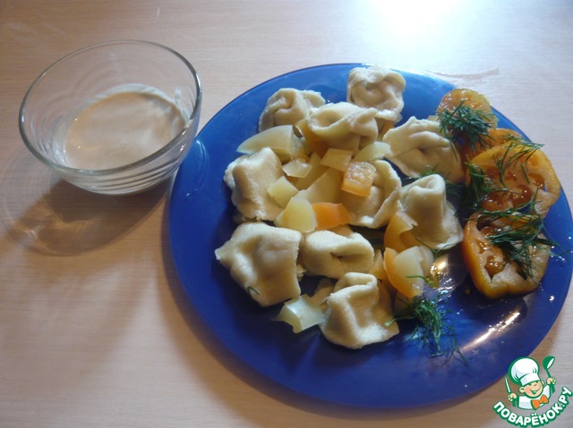 Варим тортеллини вместе с кусочками перцев, выкладываем на тарелку.