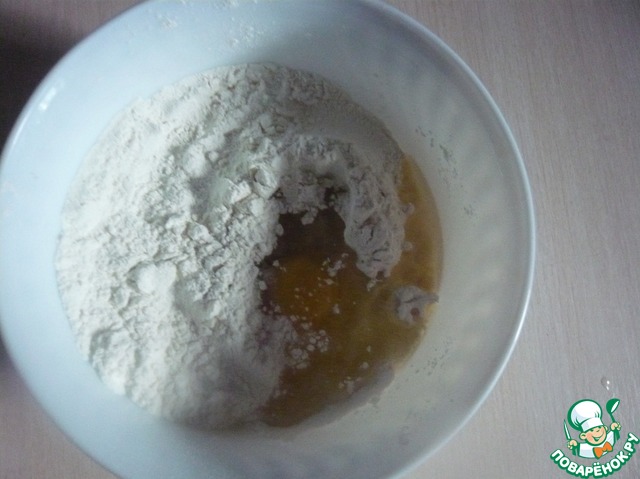 Масло растапливаем на водяной бане. В муку добавляем яйцо, соль и растопленное масло. Замешиваем тесто, накрываем пленкой и оставляем на 30мин.