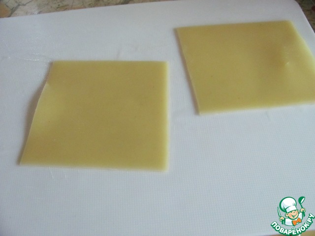 Листы лазаньи подготовить согласно инструкции на упаковке. Разрезать каждый лист поперек.