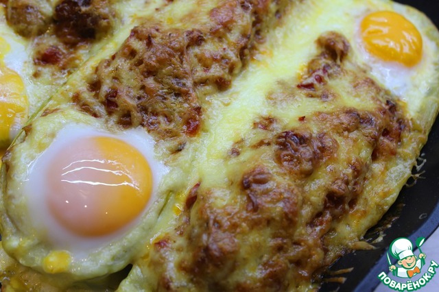 А затем выложила желтки и ещё на 3-5 минут в духовку. Один, к сожалению, растекся. Руки-крюки))