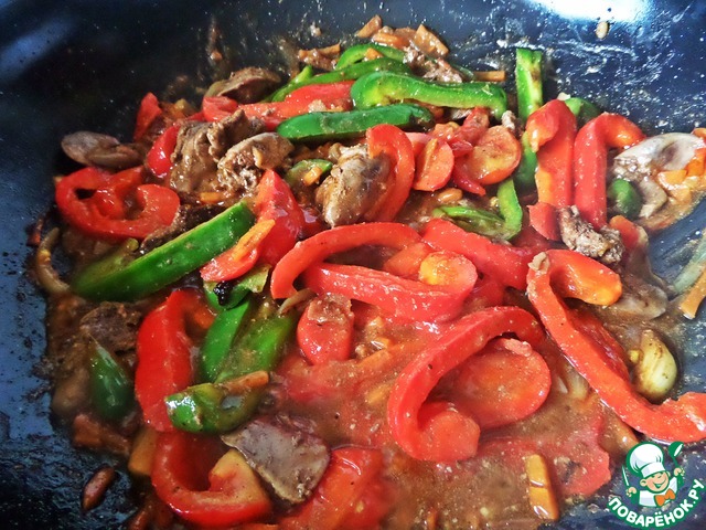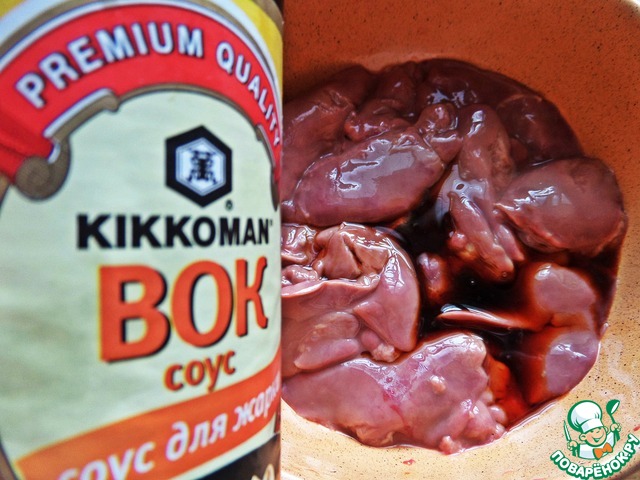 Затем разогреть ВОК и переложить печёнку вместе с маринадом.