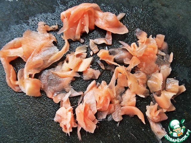 Свежий корень имбиря натереть. У меня был маринованный, нарезать.