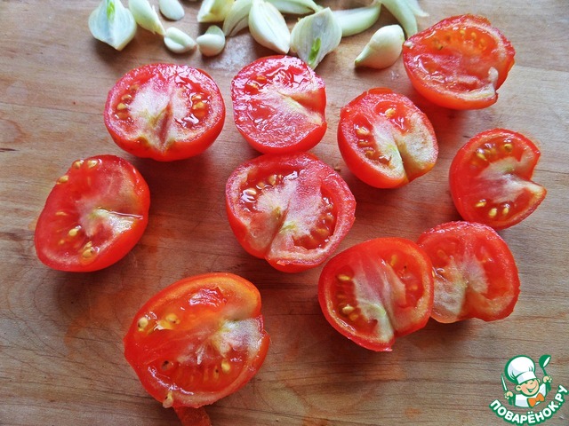 Помидоры, если небольшие, разрезать пополам или на четверти.