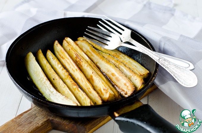 В сотейнике или сковороде разогреть растительное масло на сильном огне и обжарить кабачки до румяности.