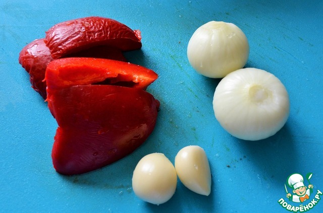 Вымыть и почистить перец, лук и чеснок.