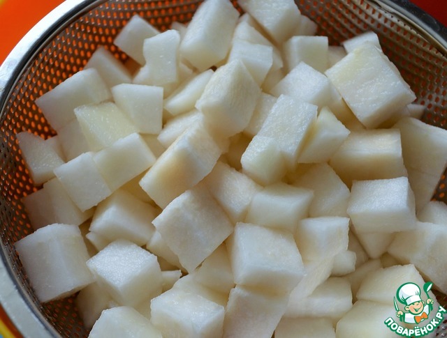 | Помните как в детстве просили маму оставить кочерыжку?! А теперь и не надо просить, ведь кольраби - полностью "кочерыжка", вкусная, хрустящая. Предлагаю рецепт, по которому кольраби еще и на картошку с мясом похожа. Хотя ни одного, ни другого там нет, точно. Угощайтесь. |