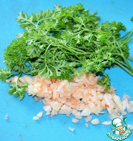 Нарубить чеснок и петрушку.
