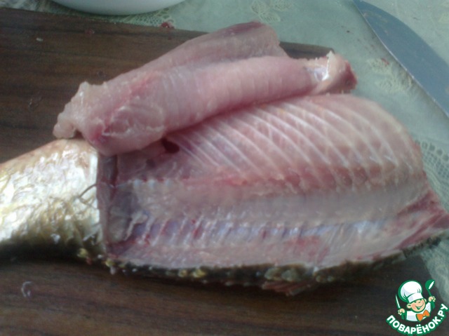 резать нужно на расстоянии не более 3-5 мм., тогда мелкие косточки секутся и получается почти чистое филе...