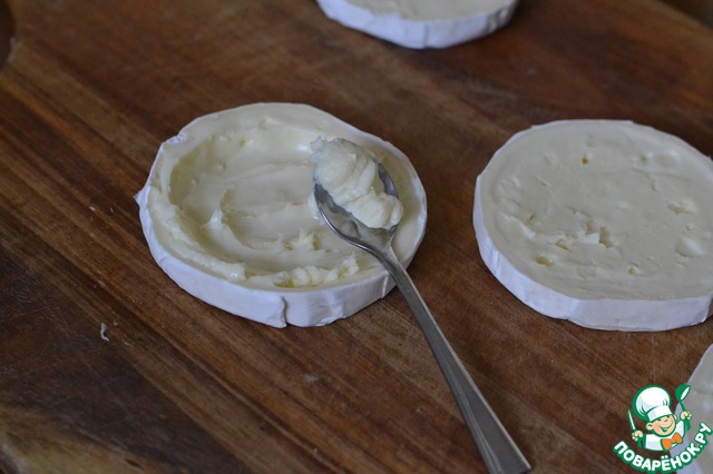 Ложечкой аккуратно выбрать серединку, отступив от края и не повредив дно сыра. Серединку откладываем в отдельную мисочку.