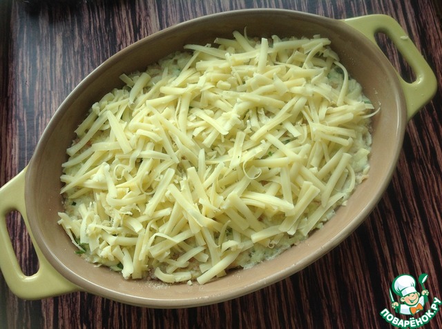 Форму для запекания смазать растительным маслом, обсыпать манкой. Выложить в форму кабачковую массу, разровнять.