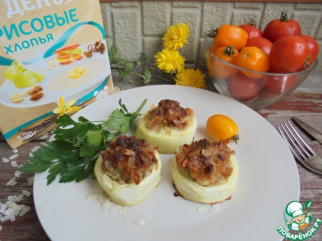 Цуккини, фаршированные мясом и рисовыми хлопьями