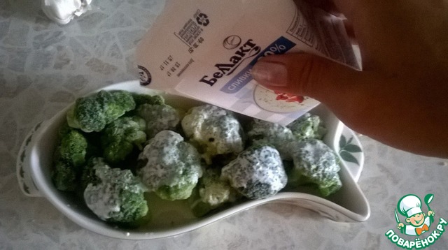 Брокколи (у меня было замороженное, в оригинале свежее) выложить в форму.