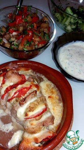 | Как же я давно не опубликовывала рецепты) Недавно написала в дневнике http://www.povarenok .ru/blog/show/54950/ что пересмотрела свой рацион питания. В продолжение той темы, хочу поделиться с вами вкусным, лёгким и очень быстрым в приготовлении рецептом. А, самое главное, что продукты можно заменять и увеличивать в зависимости от порций. Блюдо вполне может быть подано на праздничный стол или гостям, которые пришли внезапно и негаданно. В общем, это универсальный рецепт, который облегчит вашу жизнь и сэкономит время. Ведь большую часть времени блюдо будет запекаться в духовке. В рецепте я привожу количество на 2 порции. Соль в рецепте я не использую вообще! Рецепт подойдёт так же и тем, кто придерживается не строгой диеты, правильного питания и следит за своим весом и здоровьем. |