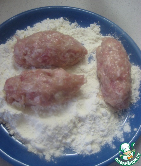 Сформировать сиченики, по форме напоминающие небольшие "колбаски" (по размеру как большой палец). Обвалять их в муке.