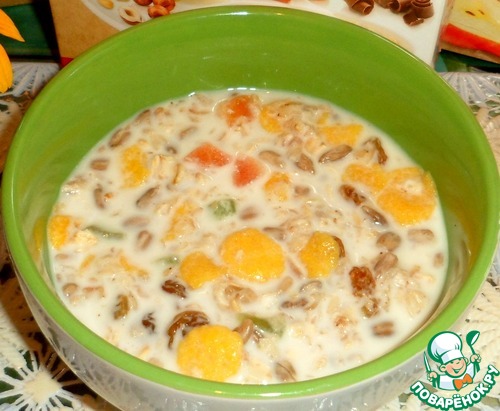 | Этот завтрак можно назвать "На бегу". Так сказать, "палочка -выручалочка". Я заранее смешиваю все ингредиенты, ссыпаю в банку, и она стоит на столе. Мои сами себе тогда успевают приготовить завтрак до работы, без хлопот и минимум затраты времени. Овсяные хлопья могут быть как и одного, так и несколько видов, добавки на ваше усмотрение. Сегодня воскресенье, дочь с зятем уже свои такие же порции съели и убежали на работу, у них скользящий график, а я буду готовить для внуков. Они очень любят эту кашу из хлопьев. Жаль, что только в выходные могут есть. В будни в садике и школе завтракают. Буду рада, если и вам пригодится этот быстрый завтрак. |