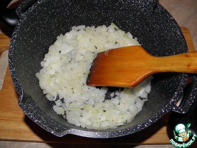 Лук мелко нарезать, обжарить в кастрюле на растительном масле