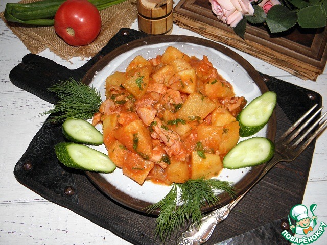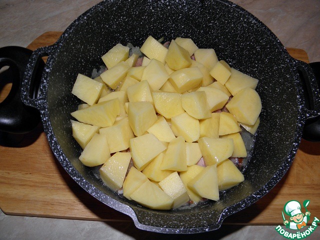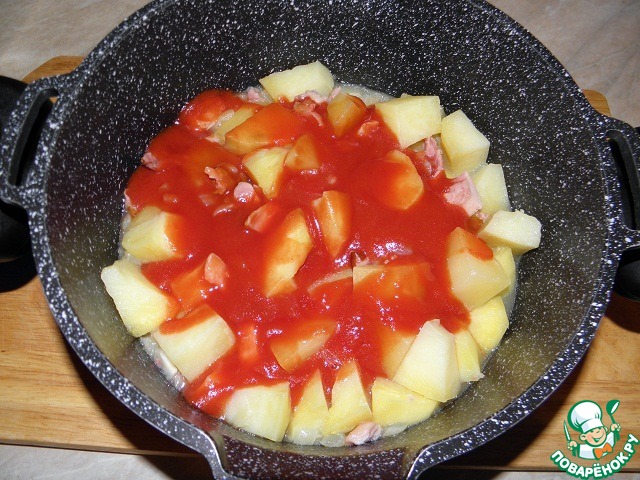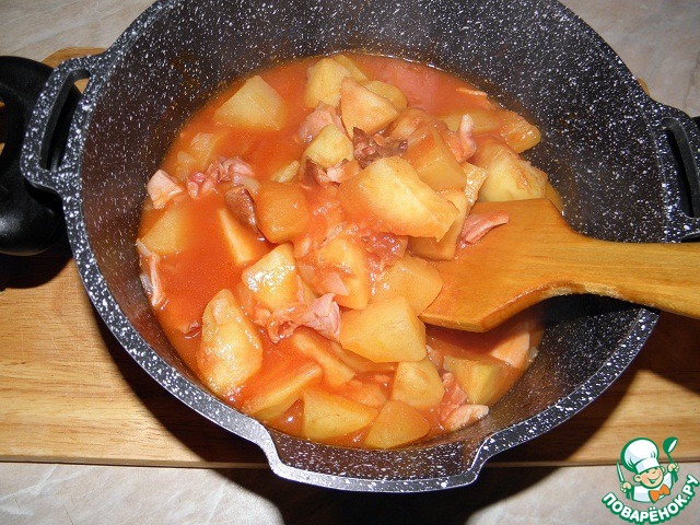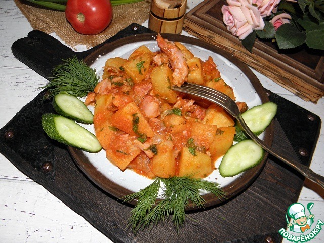 Картофель, тушенный с копченым мясом