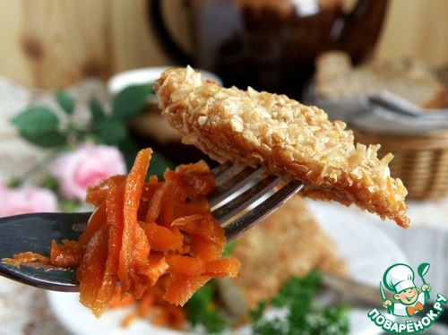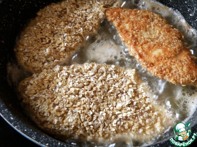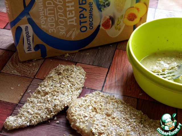 Утром филе вынуть и щедро обмакнуть в отруби – овсяные от «Мистраль» отлично подходят для этого. Если останется яйцо, можно смешать его с отрубями и обжарить после филе.