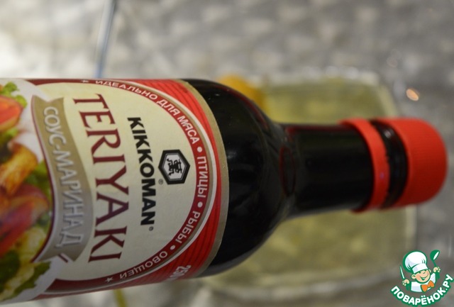 Смешиваем соевый соус Kikkoman Teriyaki, растительное масло, горчицу и мёд.