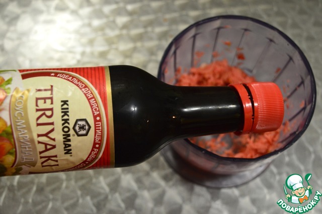 Смешиваем его с мёдом и соевым соусом Teriyaki TM Kikkoman.