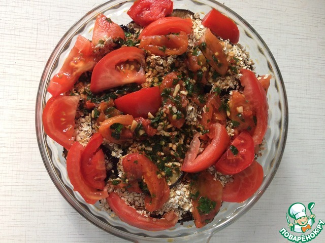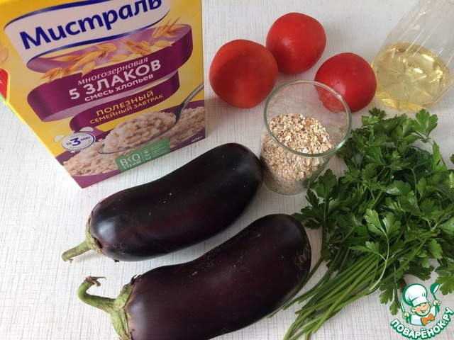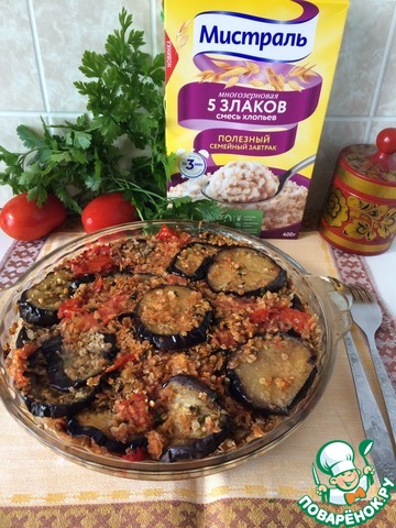| Рецепт приготовления баклажанов с томатами и смесью хлопьев "5 злаков" в духовке. |